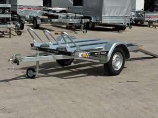 Robust, specialised trailer for the transport of motorbikes with overrun guide retractable under the loading surface. Underframe construction based on galvanised, bent steel profiles, bolted together, with numerous attachment points for transport straps. Adjustable motorbike wheel locking lugs during transport.