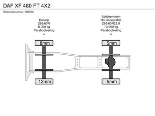 Zadní náprava: Velikost pneumatiky: 295/60R22.5; Max. zatížení nápravy: 13000 kg; Značka náprav: Not acceptable; Profil pneumatiky uvnitř vlevo: 5 mm; Profil pneumatiky vlevo: 5 mm; Profil pneumatiky uvnitř vpravo: 4 mm; Profil pneumatiky vpravo: 5 mm